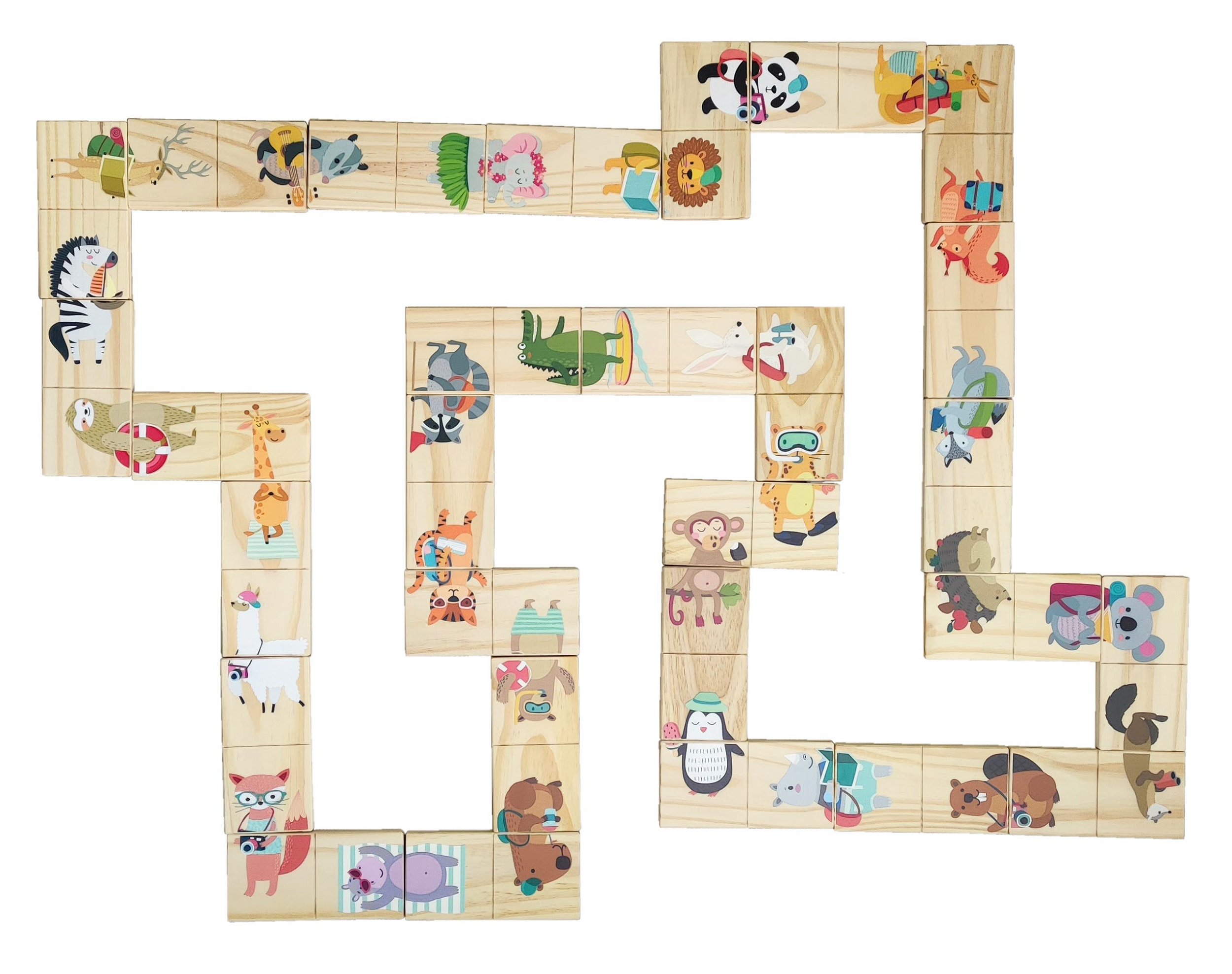 Um maravilhoso dominó gigante, com peças em madeira, que desperta a curiosidade, a atenção e a associação das partes do corpinho dos animais.