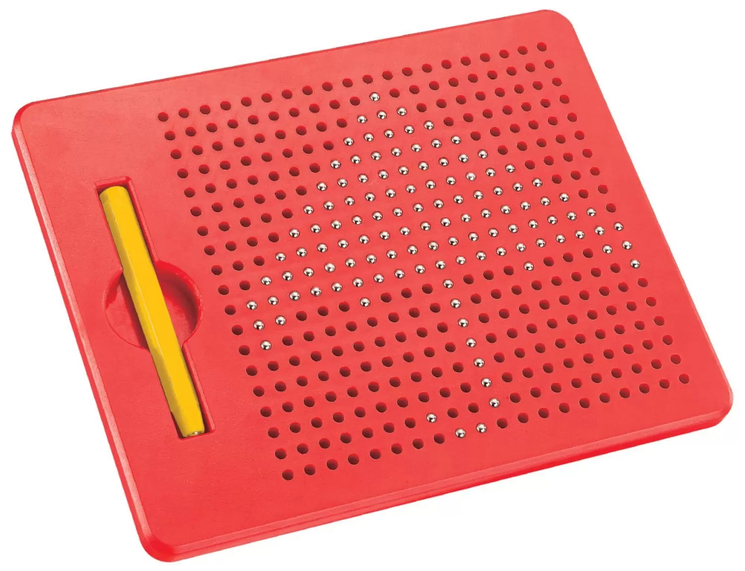 Magpad Desenho é um brinquedo educativo magnético, composto por uma tela com 380 bolinhas magnéticas (que não saem) e uma caneta magnética, que quando se aproxima da tela é possível escrever e desenhar.