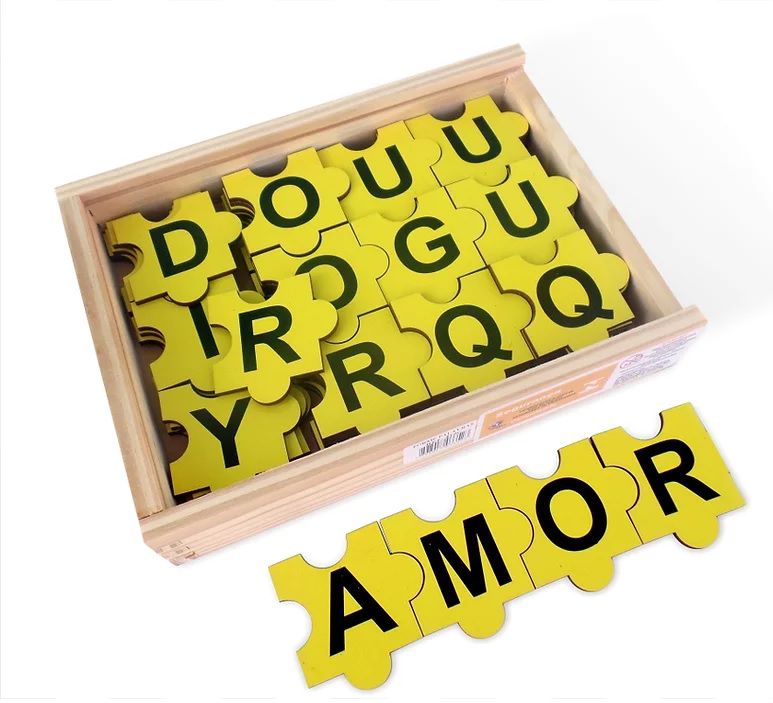 Forme as Palavras é um quebra cabeça com 70 peças recortadas, onde a criança formará palavras encaixando-as entre si.