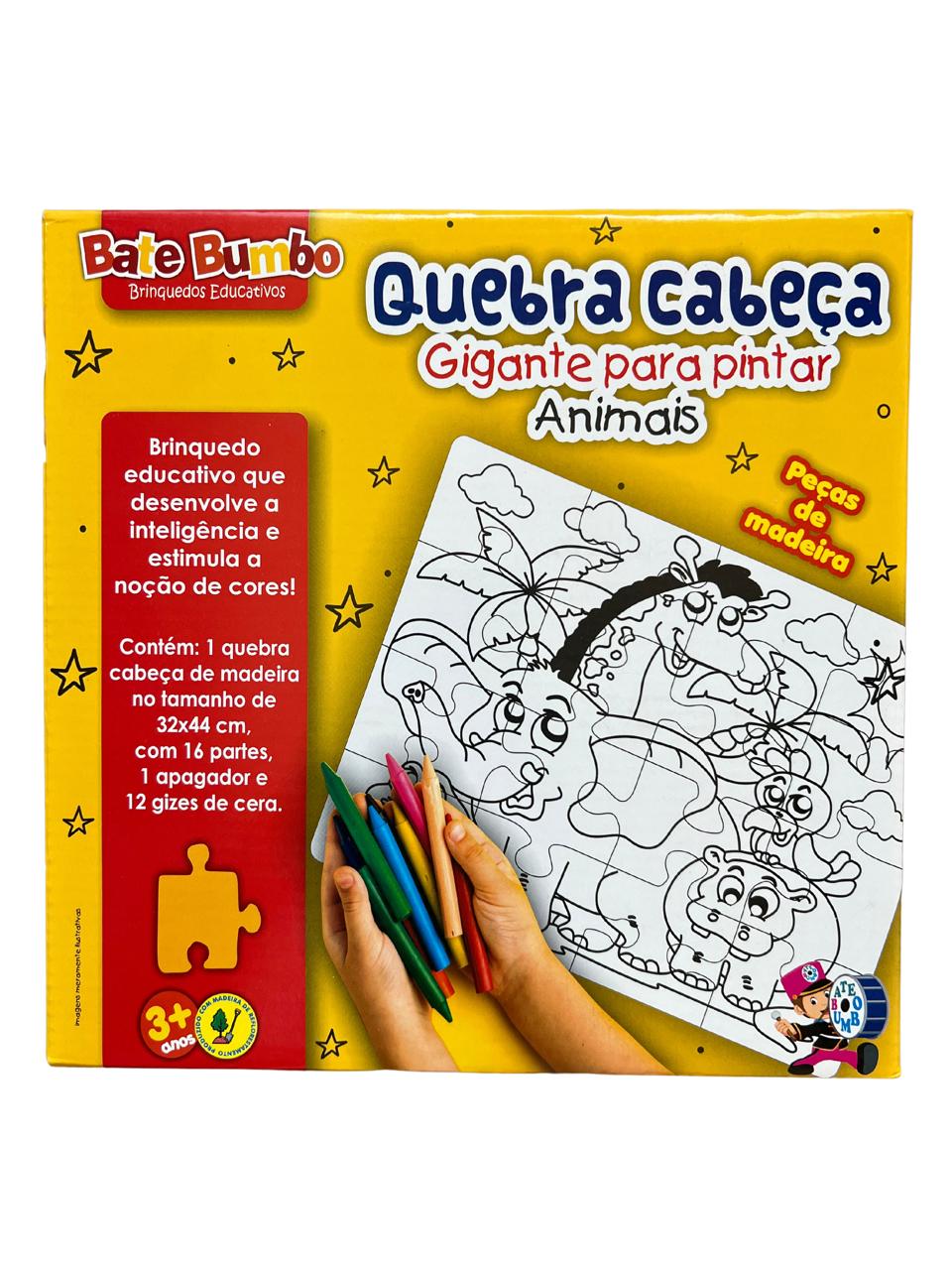 Contém 16 peças em madeira, 1 apagador e 12 gizes de cera.