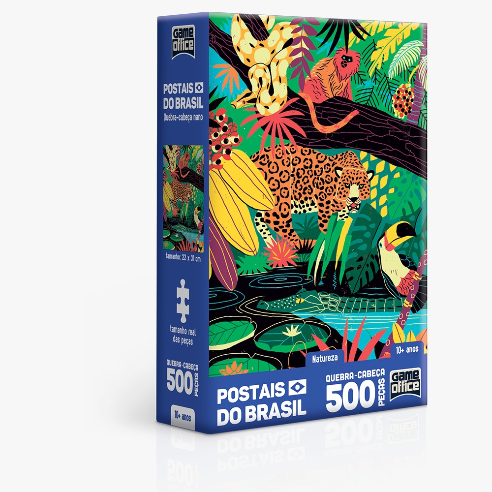 Neste quebra-cabeça de 500 peças você encontra a fauna e a flora que são cartões-postais do Brasil: